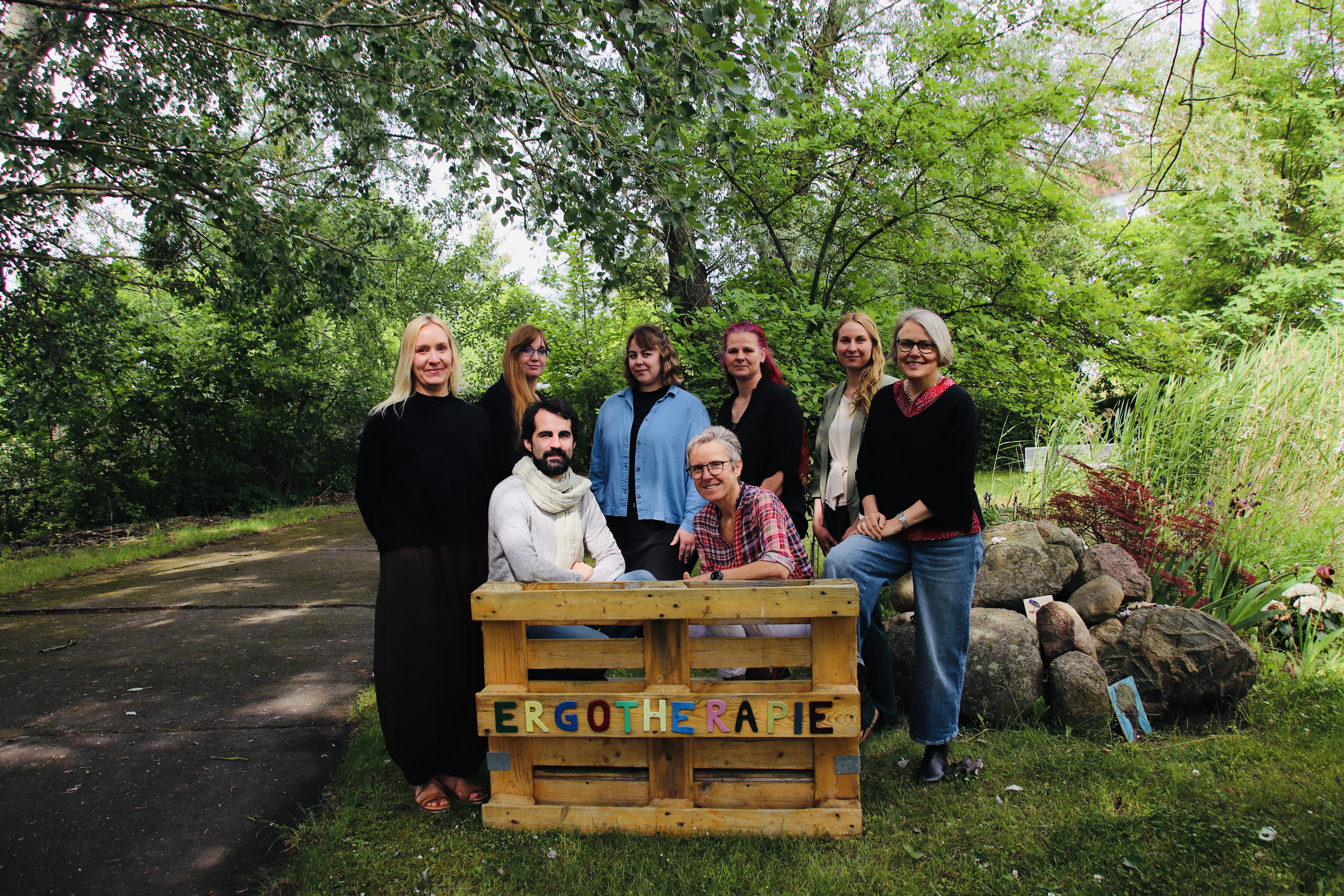Das Team der Schule für Ergotherapie (vorne von links): Herr Hülsmann, Frau Grill, (hinten von links) Frau Marx, Frau Leddin, Frau Rösnick, Frau Graap und Frau Rutenberg, Frau Georg